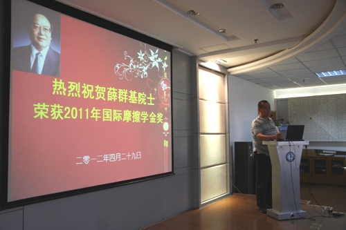 全国摩擦学专家共聚金城庆贺薛群基院士荣获2011年国际摩擦学金奖