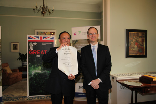英国驻华大使Sebstian Wood 勋爵为薛群基院士颁发证书