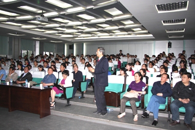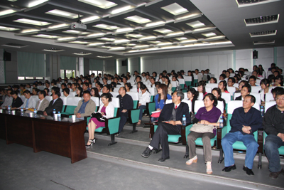 5月25日下午,中国工程院院士、中国科学院兰州化学物理研究所学术委员会主任薛群基研究员在甘肃省化学会顾问赵荣盛陪同下为兰州城市学院师生做了题为“科研工作中如何提高竞争能力”的专题报告,这是兰州化物所2010年开展“公众科学日”的系列活动之一。兰州城市学院党委书记王兴隆教授,化学与环境科学学院院长赵国虎教授以及部分教师和学生200余人参加了报告会。报告会由兰州城市学院党委常委、副校长梁延堂教授主持。