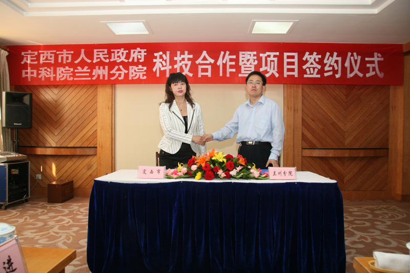 在签约仪式上,兰州化物所与甘肃岷海制药有限责任公司、甘肃通渭晓铃商贸有限责任公司、甘肃效灵生物开发有限责任公司、甘肃扶正药业科技股份有限公司等企业签定了4个具体科技合作项目。