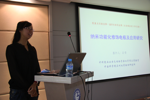 兰州化物所所长助理、实验室主任师彦平作了工作报告,汇报了实验室基本情况,承担项目与经费争取、代表性研究工作进展及部署,科研平台与队伍建设,人才引进、学术交流和院地合作情况,实验室发展亟待解决的问题和改进建议,以及上一次学委会提出问题的解决和落实情况。岳莹、刘永峰、梁晓静、燕志强四位实验室青年科研人员分别就纳米功能化修饰电极及应用研究、大孔吸附树脂吸附特性及应用研究、功能化金属丝固相微萃取新材料新技术研究和瑞香狼毒活性物质及高值化利用研究等工作做了专题报告,同与会专家交流了实验室最新科研动态和发展思路,专家们对相关科研工作给予了热情的指导。
