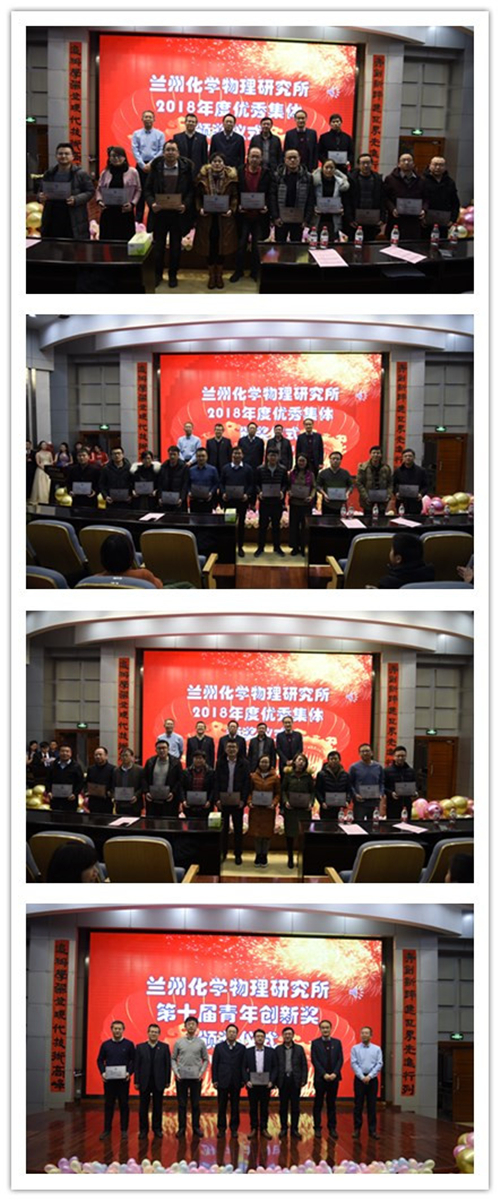 联欢会前,举行了研究所2018年度“优秀集体”和“第十届兰州化物所青年创新奖”颁奖仪式。研究所所长、党委书记王齐华宣读了获奖名单,所领导共同为获奖集体和个人颁发了奖牌。王齐华在新年致辞中代表研究所党政领导班子向全所干部职工、研究生同学、离退休老同志致以新春的问候,回顾了过去一年研究所各项事业的发展与变化。他希望全所干部职工和研究生在新的一年里不忘初心,牢记使命,围绕研究所“一三五”规划和中科院“率先行动”计划升级版,在各自的岗位上,开拓进取、争先创优,为研究所各项事业的进步,为地方经济社会的发展,为建设世界科技强国做更多的贡献。