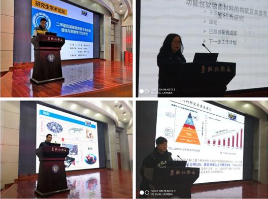 开幕式后,19名研究生按学科分组进行学术报告与交流,展示了各自研究领域的最新成果与研究进展。经评委老师现场评分,最终,化学学科和材料科学与工程学科分别评选出一等奖1名、二等奖4名、三等奖6名。