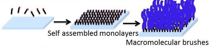 1. About SI-ATRP Controlled/“living” surface-initiated radical polymerization offers the possibility to generate brush like polymeric thin films with controllable thickness, composition, and architecture. Polymer brushes have found widespread applications as model responsive and non-biofouling surfaces, in protein binding and immobilization studies, chromatography supports, in membrane applications, antibacterial coatings, actuation, and low friction surfaces et. al. Among the many controlled polymerizations, atom-transfer radical polymerization (ATRP) is most widely used, particularly for surface grafting in aqueous solution are attractive from both economic and environmental points of view. In theory, SI-ATRP can be carried out on any substrates if one can immobilize the ATRP initiator on the desired surface.