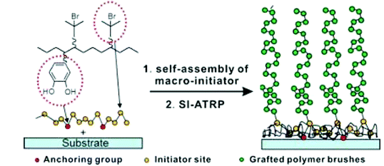 12. A versatile macro-initiator with dual functional anchoring groups for surface-initiated atom transfer radical polymerization on various substrates, Qiangbing Wei , Xiaolong Wang and Feng Zhou*, Polym. Chem., 2012, 3, 2129-2137.