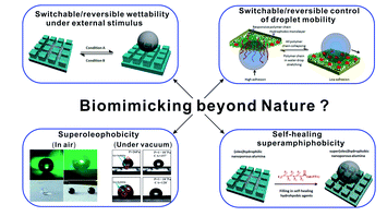 17. Extreme wettability and tunable adhesion: biomimicking beyond nature? Xinjie Liu, Yongmin Liang, Feng Zhou* and Weimin Liu, Soft Matter, 2012, 8, 2070-2086.