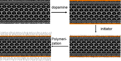 7. Modification of carbon nanotubes with a nanothin polydopamine layer and polydimethylamino-ethyl methacrylate brushes, Haiyuan Hu, Bo Yu, Qian Ye, Yusheng Gu, Feng Zhou*, Carbon, 2010, 48, 2347-2353.