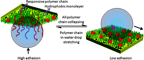 14. Switching Water Droplet Adhesion Using Responsive Polymer Brushes, Xinjie Liu, Qian Ye, Bo Yu, Yongmin Liang, Weimin Liu, Feng Zhou*, Langmuir, 2010, 26, 12377-12382.