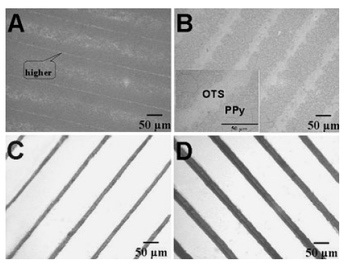 2. Template-Controlled Fabrication of Conducting Polymer and Complementary Gold Microstructures Using Patterned Chemically Tethered Polymer Brushes, Feng Zhou, Weimin Liu*, Jingcheng Hao, Tao Xu, Miao Chen, Qunji Xue, Advanced Functional Materials, 2003, 13, 938-942.