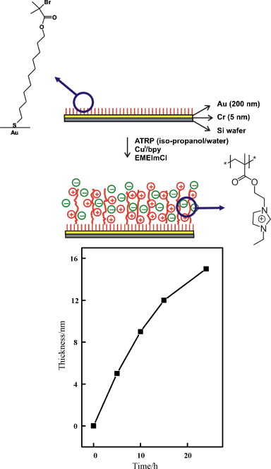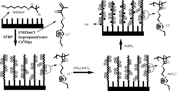 39. Electrochemical impedance spectroscopy of poly (1-ethyl 3-(2-methacryloyloxy ethyl) imidazolium chloride) brushes with locally generated Pd, Bo Yu, Feng Zhou, Yu, Bo, Xianming Hou, Weimin Liu*, Electrochemistry Communications, 2007, 9, 1749-1754.