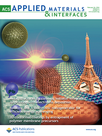13. Initiator-Integrated 3D Printing Enables the Formation of Complex Metallic Architectures, Xiaolong Wang, Qiuquan Guo, Xiaobing Cai, Shaolin Zhou, Brad Kobe, and Jun Yang*,ACS Appl. Mater. Interfaces, 2014, 6, 2583-2587. cover paper