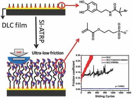 15. Surface Modification of Diamond-Like Carbon Film with Polymer Brushes Using a Bio-Inspired Catechol Anchor for Excellent Biological Lubrication, Qiangbing Wei, Xiaowei Pei, Junying Hao, Meirong Cai1*, Feng Zhou*, and Weimin Liu, Advanced Materials Interfaces, 2014, 1 (5) ,