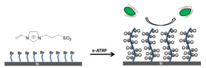 24. Grafting zwitterionic polymer brushes via electrochemical surface initiated atomic transfer radical polymerization (e-SIATRP) for antifouling applications, Wenwen Zhao, Qian Ye*, Haiyuan Hu, Xiaolong Wang and FENG ZHOU*, J. Mater. Chem. B, 2014, 2, 5352-5357