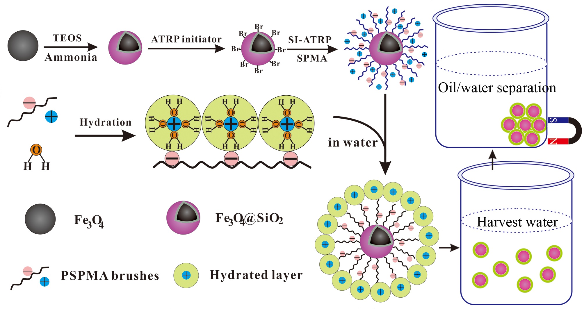 23. Core-shell-corona structured polyelectrolyte brushes-grafting magnetic nanoparticles for water harvesting, Guoqiang Liu, Meirong Cai, Xiaolong Wang*, Feng Zhou*, and Weimin Liu, ACS Appl. Mater. Interfaces, 2014, 6 (14), 11625–11632