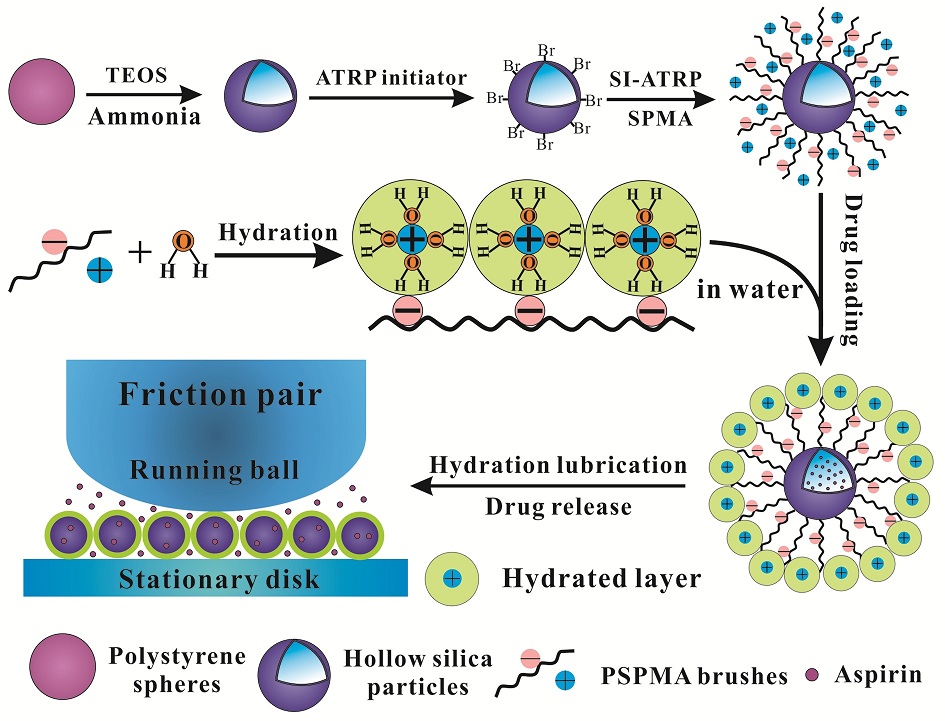 16. Charged Polymer Brushes-Grafted Hollow Silica Nanoparticles as a Novel Promising Material for Simultaneous Joint Lubrication and Treatment, Guoqiang Liu, Meirong Cai*, Feng Zhou*, and Weimin Liu, J. Phys. Chem. B, 2014, 118 (18) ,4920-4931