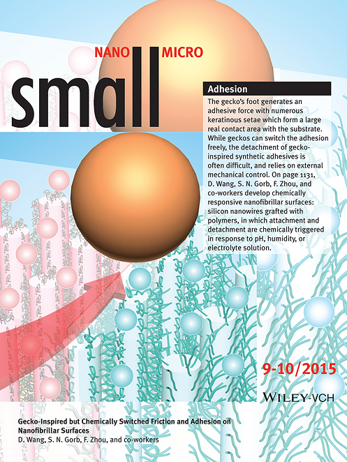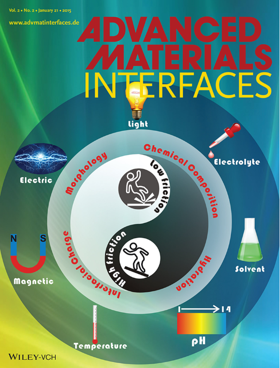 12. Molecularly Engineered Dual-crosslinked Hydrogel with Ultra-High MechanicalStrength, Toughness and Good Self-recovery, Peng Lin, Shuanhong Ma, Xiaolong Wang*, Feng Zhou*, Advanced Materials.2015,27(12),2054~2059 11. Electrostatic self-assembly of Au nanoparticles onto thermosensitive magnetic core-shell microgels for thermally tunable and magnetically recyclable catalysis, Guoqiang Liu, Daoai Wang*, Feng Zhou* and Weimin Liu, Small,2015, 11(23), 2807-2816, DOI: 10.1002/smll.201403305  10. Brushing up from “Anywhere” under Sunlight: A Universal Surface-Initiated Polymerization from Polydopamine-Coated Surfaces, Wenbo Sheng, Bin Li, Xiaolong wang, Bin Dai, Bo Yu*, Xin Jia* and Feng Zhou*, Chem. Sci., 2015, 6, 2068-2073.  9. Bioinspired Self-Healing Organic Materials: Chemical Mechanisms and Fabrications, Xiangyu Yin, Zhilu Liu, Daoai Wang, Xiaowei Pei, Bo Yu*, Feng Zhou*, Journal of Bionic Engineering, 2015, 12(1), 1-16. 8. Antifouling Surfaces and Materials, (Zhou, F., Ed.) Springer Berlin Heidelberg, 2015. 7. Correlation between conformation change of polyelectrolyte brushes and lubrication, Bin Li, Bo Yu*, Xiao-long Wang, Feng Guo*, Feng Zhou, Chinese Journal of Polymer Science, 2015, 33, 163-172. (Cover picture) 6. How Solid–Liquid Adhesive Property Regulates Liquid Slippage on Solid Surfaces? Yahui Xue, Yang Wu, Xiaowei Pei, Huiling Duan*, Qunji Xue, and Feng Zhou*, Langmuir, 2015, 31(1), 226-232. 5. Interfacial Friction Control, Yang Wu, Qiangbing Wei, Meirong Cai and Feng Zhou,* Advanced Materials Interfaces, 2015, 2(2). DOI: 10.1002/admi.201400392. Cover. 4. Tapping the Potential of Polymer Brushes through Synthesis, Bin Li, Bo Yu, Qian Ye, Feng Zhou*, Accounts of Chemical Research, 2015, 48 (2) : 229–237. 3. Gecko-inspired but Chemically Switched Friction and Adhesion on Nanofibrillar Surfaces, Shuanhong Ma, Daoai Wang*, Yongmin Liang, Baoquan Sun, Stanislav N. Gorb,* and Feng Zhou,* Small, 2015,11(9-10) : 1131-1137.(Cover picture)  2. One-step Modification of Fabrics with Bioinspired Polydopamine@octadecylamine Nanocapsules for Robust and Healable Self-cleaning Performance, Yanhua Liu, Zhilu Liu, Yupeng Liu, Haiyuan Hu, Bo Yu*, Yi Li, Pengxun Yan, Feng Zhou*, Small, 2015, 11(4) : 426-431. 1. 李斌;于波;叶谦;周峰,外界刺激调控的表面引发原子转移自由基聚合,化学进展 (Progress in Chemistry),2015, 27(2/3): 146-156.