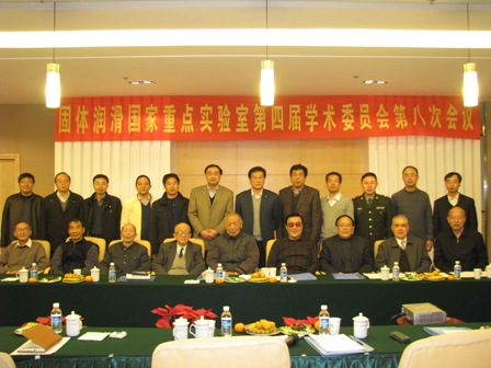 固体润滑国家重点实验室第四届学术委员会和指导委员会第八次会议于2008年12月19日—20日在青岛召开。出席会议的学委会委员和指导委员会委员有:薛群基院士、徐僖院士、丁传贤院士、张嗣伟教授、齐毓霖教授、刘家浚教授、赵源研究员、王天民教授、胡元中教授、葛世荣教授、徐可为教授、李健研究员、陈建敏研究员及部分院校代表25人。会议内容为:审议2007/08实验室工作报告,听取专题学术研究报告,讨论实验室存在的问题及今后发展方向、评审2009年度开放课题。