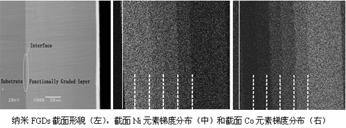 在国家自然科学基金项目支持下,中国科学院兰州化学物理研究所固体润滑国家重点实验室薛群基院士和张俊彦研究员领导的研究小组,通过纳米电沉积和循环热氧化的方法,制备出了具有优异润滑抗磨与耐蚀性能的功能梯度Ni-Co/CoO纳米合金镀层(简称FGDs)。该项工作被国际网站“Advanced Coatings and Surface Technology Alert”于2005年4月以(Research Highlights)形式给予专题评述。近期,研究工作的进展结果发表于国际纳米科技领域的著名期刊《纳米技术》(Nanotechnology,2006, 17: 4614–4623)上,并得到审稿人的高度评价[it does make a valuable contribution in the field of tribology (dry self lubric-ation functional surfaces) and corrosion protection]。