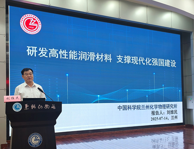 学术活动环节,中国科学院院士、兰州化物所学术委员会主任委员刘维民研究员作了题为“研发高性能润滑材料 支撑现代化强国建设”的邀请报告。低碳催化与二氧化碳利用全国重点实验室副主任崔新江、润滑材料全国重点实验室副主任王道爱、精细石油化工中间体国家工程研究中心副主任毕迎普、兰州润滑材料与技术创新中心副主任王廷梅、天然药物与化学测量研究中心主任杨军丽和资源化学与能源材料研究中心杨兵军副研究员分别介绍了各自实验室(中心)基本情况。
